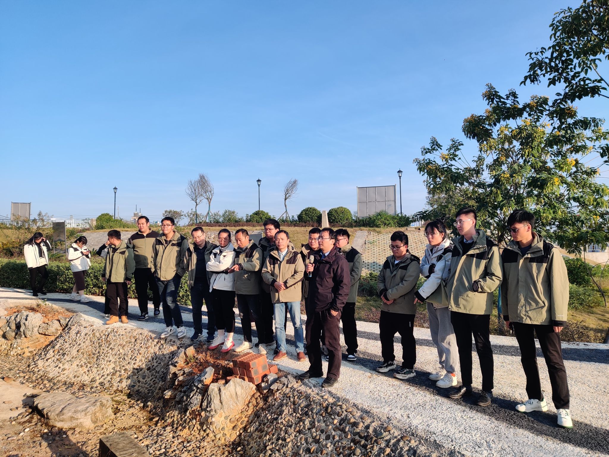 魏保兴老师向来访企业介绍水利施工实训场