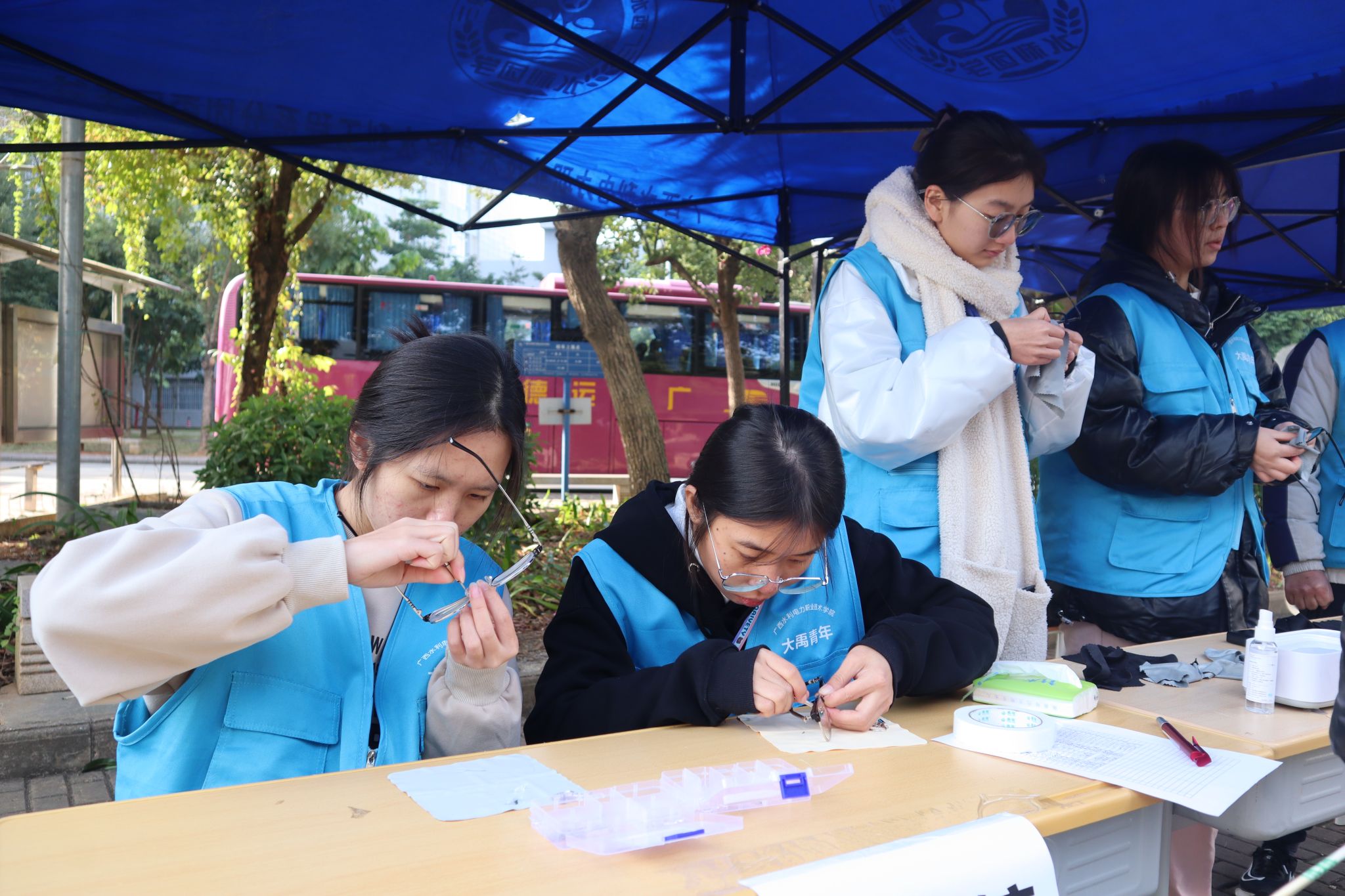 本次志愿活动现场参与同学络绎不绝,服务内容丰富,不仅有眼镜维修及清洗、理发,还有用眼护眼科普知识的宣传服务。参加眼镜清洗的志愿者使用眼镜清洁设备,熟练的接过同学们的眼镜,耐心清洗,认真做好眼镜护理工作,并为有需要的同学提供免费更换鼻托服务。同时,志愿者们还贴心地向同学们普及用眼健康和眼镜日常护理小常识。参加公益理发的志愿者们技艺娴熟,细心为有需要的同学们进行推剪、打薄、修边。志愿者们用最饱满的热情、充足的耐心为同学们服务,收获了所有在场同学的一致好评。