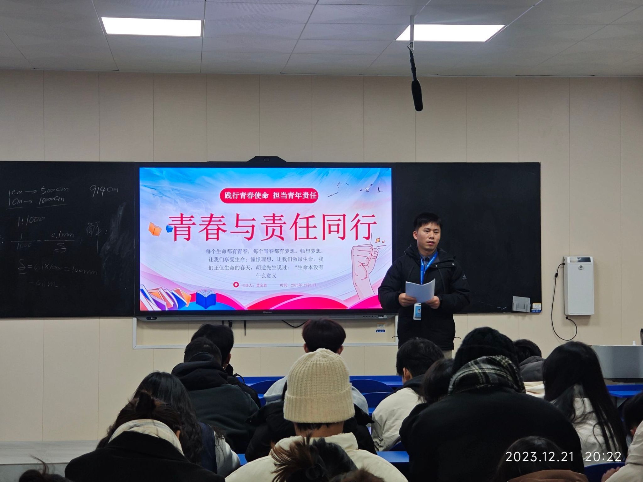 [本网讯]为了增强学生们的责任意识,激励新时代青年踔厉奋发、笃行不怠,形成知责负责的良好风气。12月24日,水利工程学院开展辅导员说系列青春与责任同行”主题班会,由“慕水”辅导员工作室指导,水利工程学院全体辅导员及学生参与。
