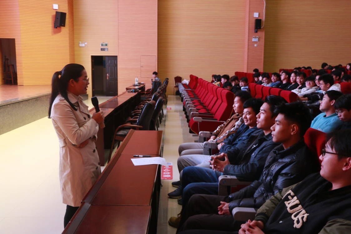 活动上,班兰美书记首先通过访谈的方式,倾听同学们的心声,了解同学们当前实习的现状、遇到的困难和未来的打算,并就同学们的提问进行答疑解惑。接着,班书记从毕业的意义、生活适应、心理适应、工作适应四个方面,结合心理学专业知识和访企拓岗及实习就业工作中遇到的现实案例,展开旁征博引、生动详实的讲解,引发同学们对职业定位及职业路径的思考,帮助同学们认识自我、接纳自我,树立正确的择业观,积极应对挫折,做好实习就业心理准备及调适。最后,班书记对2024届毕业生提出三点希望,一是严格遵守实习过程中的安全注意事项;二是学会适应,保持学习的热情,勤于思考善于总结,学会管理时间,懂得管理情绪,建立良好的人际关系;三是吃苦耐劳,无私奉献,立志成为有理想、敢担当、能吃苦、肯奋斗的时代好青年。