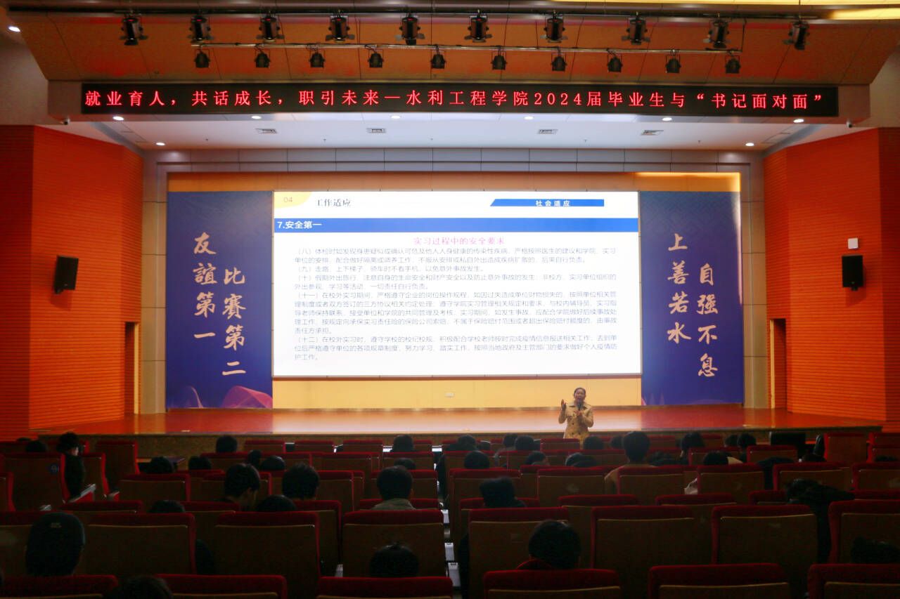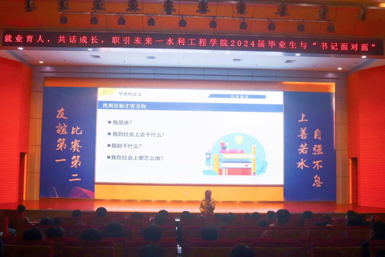 [本网讯]为帮助毕业生了解当前就业形势,缓解求职压力,帮助毕业生明确个人规划与未来发展,学会自我心理调适。1月3日晚上,水利工程学院在里建校区青年之家学术报告厅开展2024届毕业生与“书记面对面”活动。