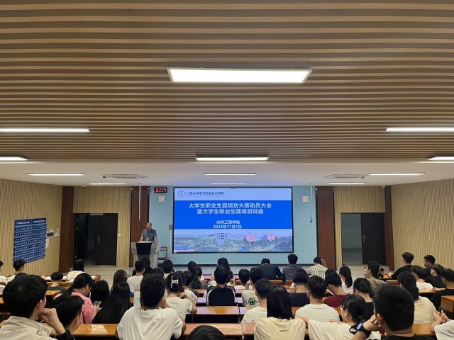 [本网讯]为积极响应学校关于举办首届大学生职业规划大赛暨广西首届大学生职业规划大赛选拔赛相关文件要求,进一步了解当前就业形势,普及大学生职业生涯规划知识,提高大学生就业、创业与实践能力。水利工程学院于11月1日晚在里建校区教学楼开展大学生职业生涯规划大赛动员大会暨大学生职业生涯规划讲座,学院全体辅导员、三个年级的学生代表参加大会并聆听讲座。