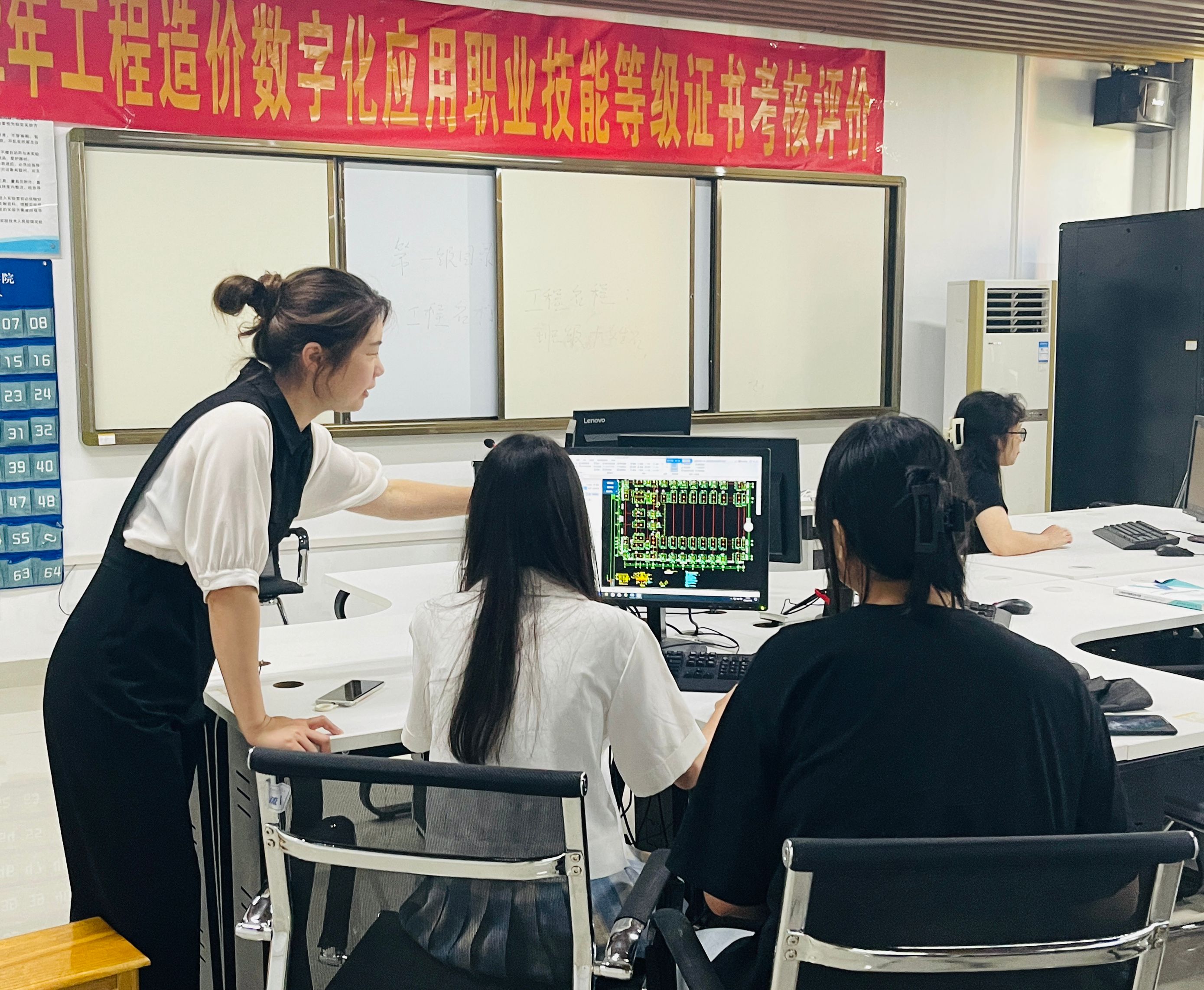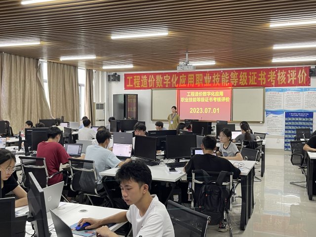 进一步贯彻国家职业教育改革工作精神,深化人才培养模式改革,促进“岗课赛证”融通提高学生数字化造价能力,7月1日,水利工程学院在里建校区举行“1+X”工程造价数字化应用职业技能等级证书考核评价工作