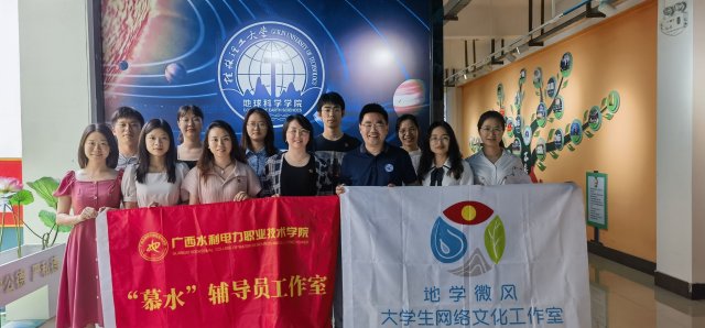 [本网讯]6月15日上午,我校“慕水”工作室王婷老师一行8人赴桂林理工大学地球科学学院,学习辅导员队伍建设及“地学微风”大学生网络文化工作室建设的经验,受到桂林理工大学地球科学学院党委副书记陶剑飞、“地学微风”工作室主持人吴田波老师等人的热情接待。