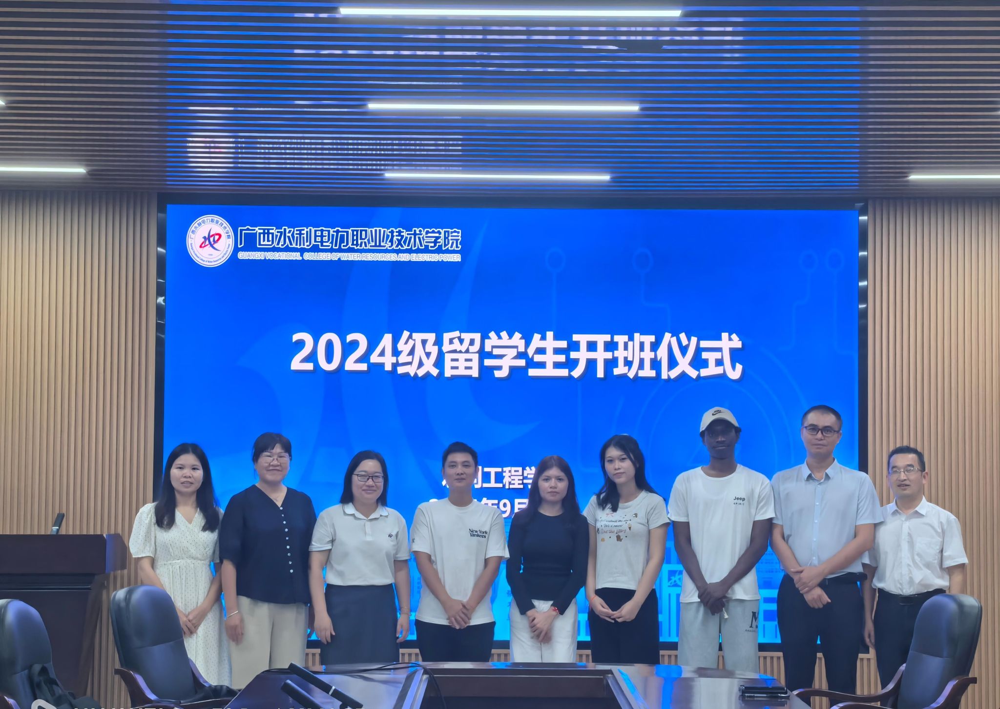 [本网讯]9月24日上午,水利工程学院在学院会议室举行了2024级来华留学生开班仪式。学院党总支专职副书记李小莲副院长张宪明、专任教师梁毅、黄彩琴、辅导员蒙媛媛以及2024级来自不同国家的来华留学生共同参加了仪式。