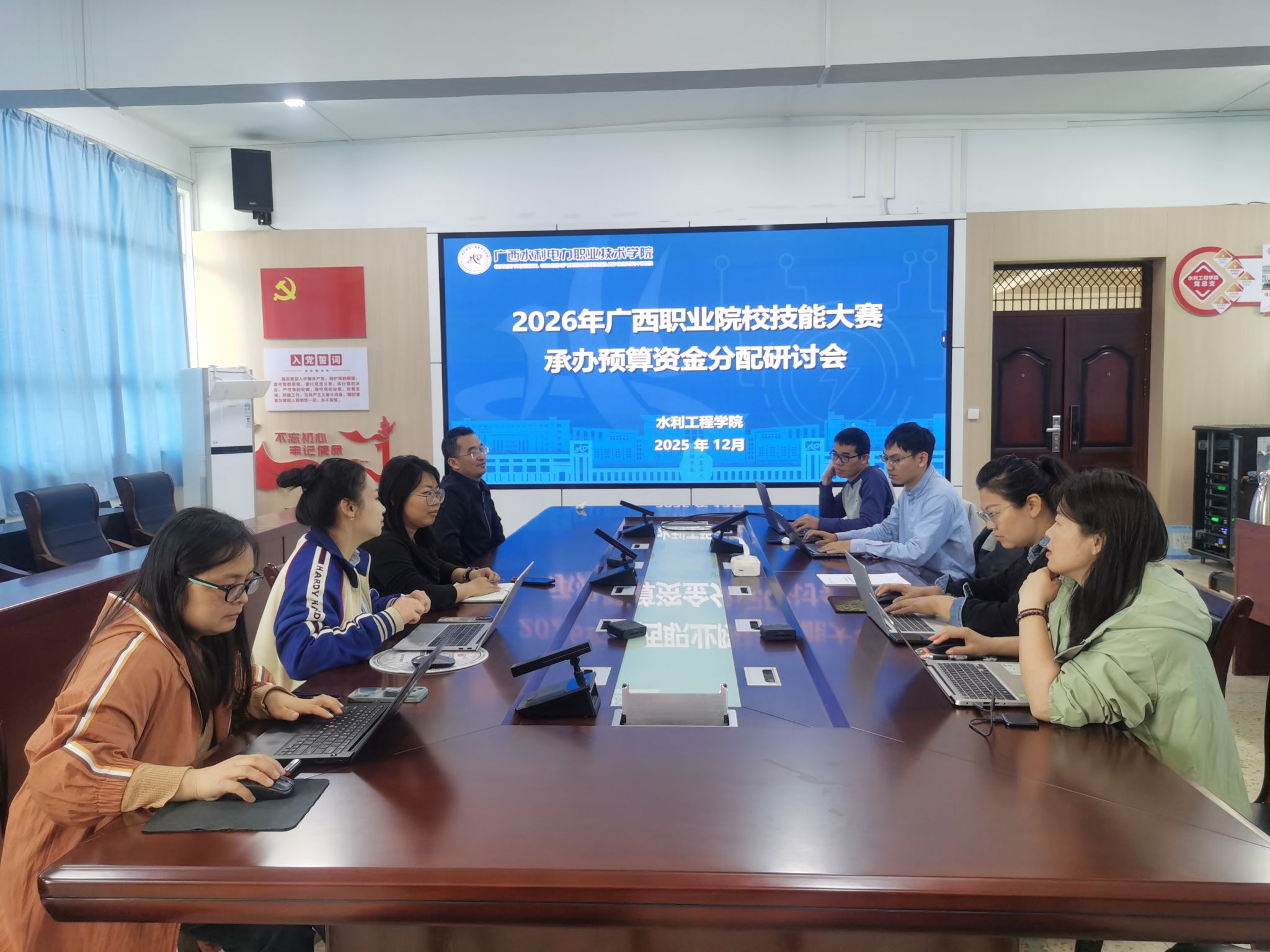 [本网讯]为扎实推进2026年广西职业院校技能大赛水利赛道承办工作,科学谋划2026年世界职业院校技能大赛相关保障事项,近日,我院召开2026年广西职业院校技能大赛水利赛道承办工作推进会暨2026年世界职业院校技能大赛预算研讨会。会议由水利工程学院副院长彭聪主持。
