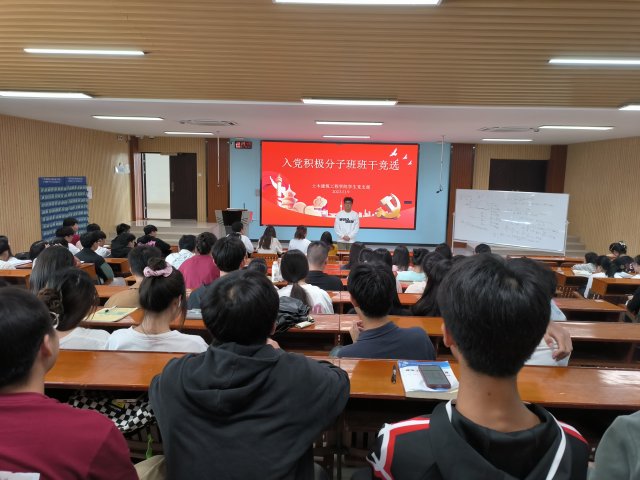 [本网讯]为加强对入党积极分子的培养和教育,土木建筑工程学院学生党支部不断创新党员发展教育管理方式,11月9日中午,在里建校区阶梯101教室召开入党积极分子班小组长竞选会议,此次会议由学生支部书记许月美老师主持,22级辅导员以及22级入党积极分子参加了会议。