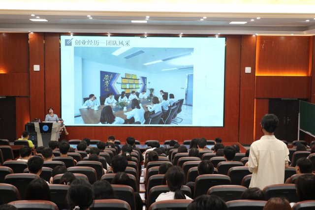 在报告会上,黄苏琼校友表达了重返母校的喜悦与感谢之情,她分享了自己在学校期间的学习经历和感悟,以及毕业后在工作中遇到的困难和挑战,并结合自身的就业创业经历,从就业心态调整、就业平台选择、学习效率提升、工作态度养成、沟通和表达能力提升以及就业经验积累等六个方面展开讲述。她鼓励同学们要坚定奋斗一定有收获的信念,端正学习态度,认清自身能力,立足当下,只要不怕吃苦、认真钻研,就能提交一份自己满意的答卷。