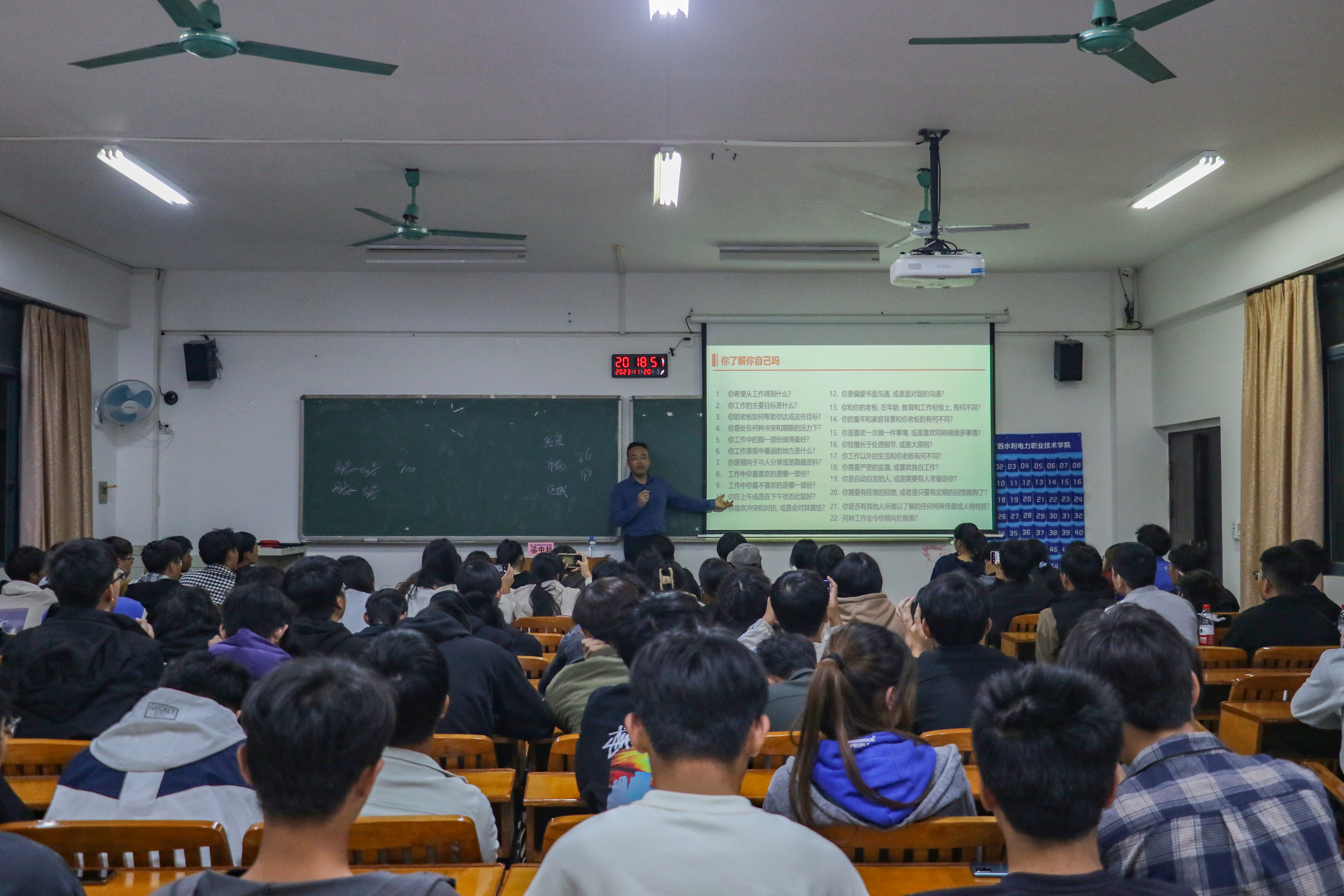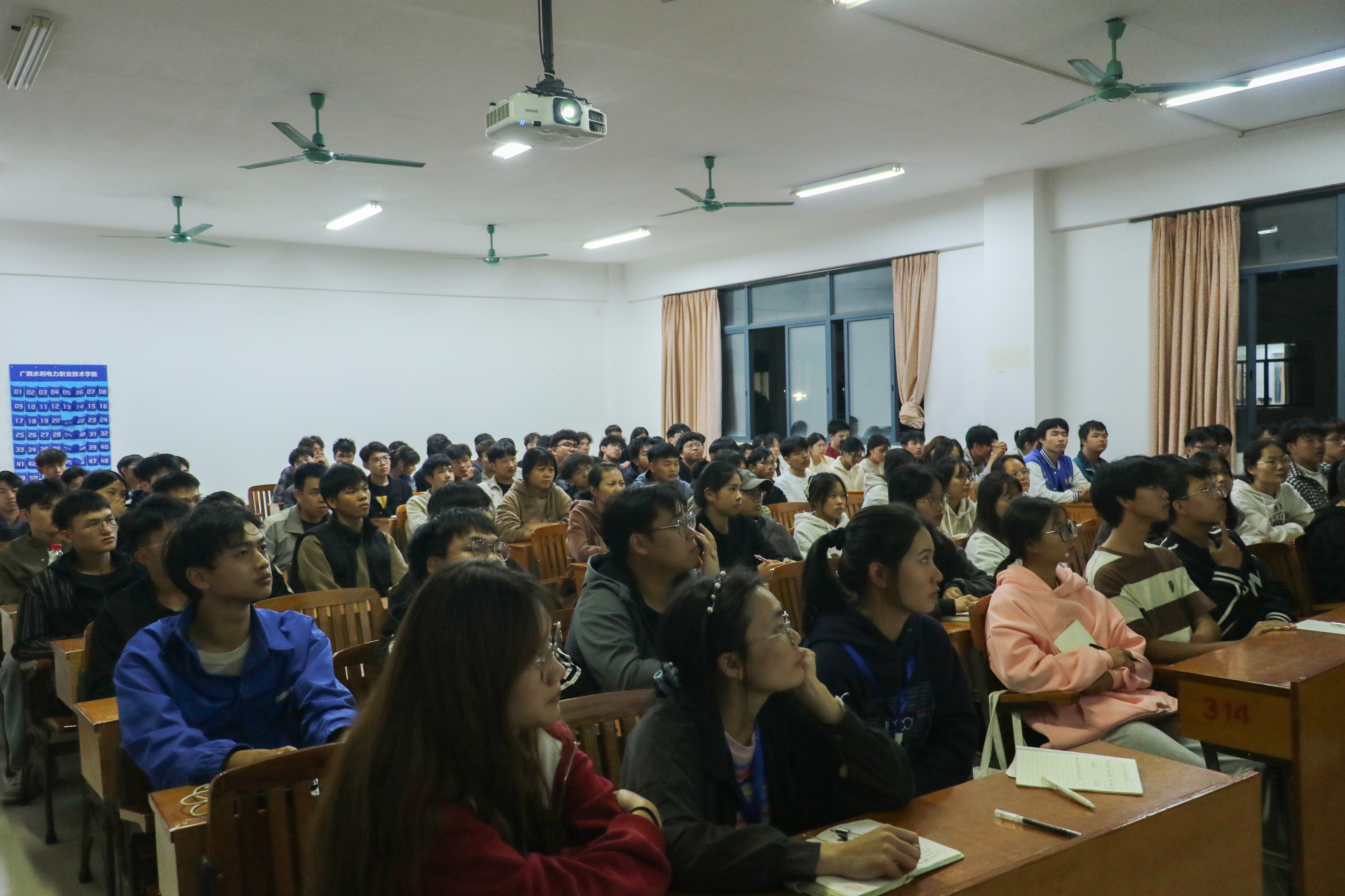 [本网讯]11月20日晚,土木建筑工程学院在教学楼314教室举办《坚定职业信仰,规划可行路径》专题党课,党总支书记梁中超主讲,23级110名积极分子到场学习。