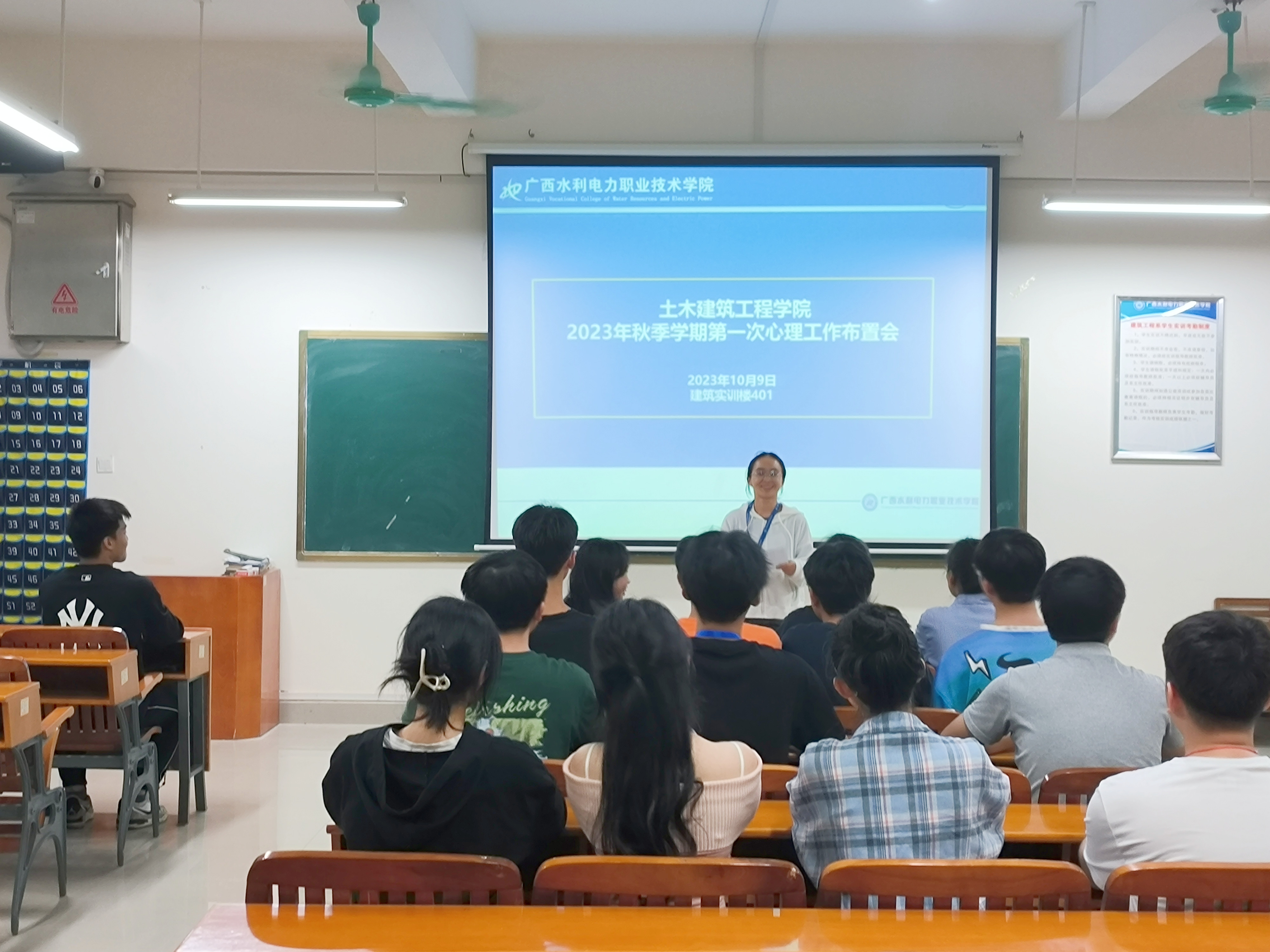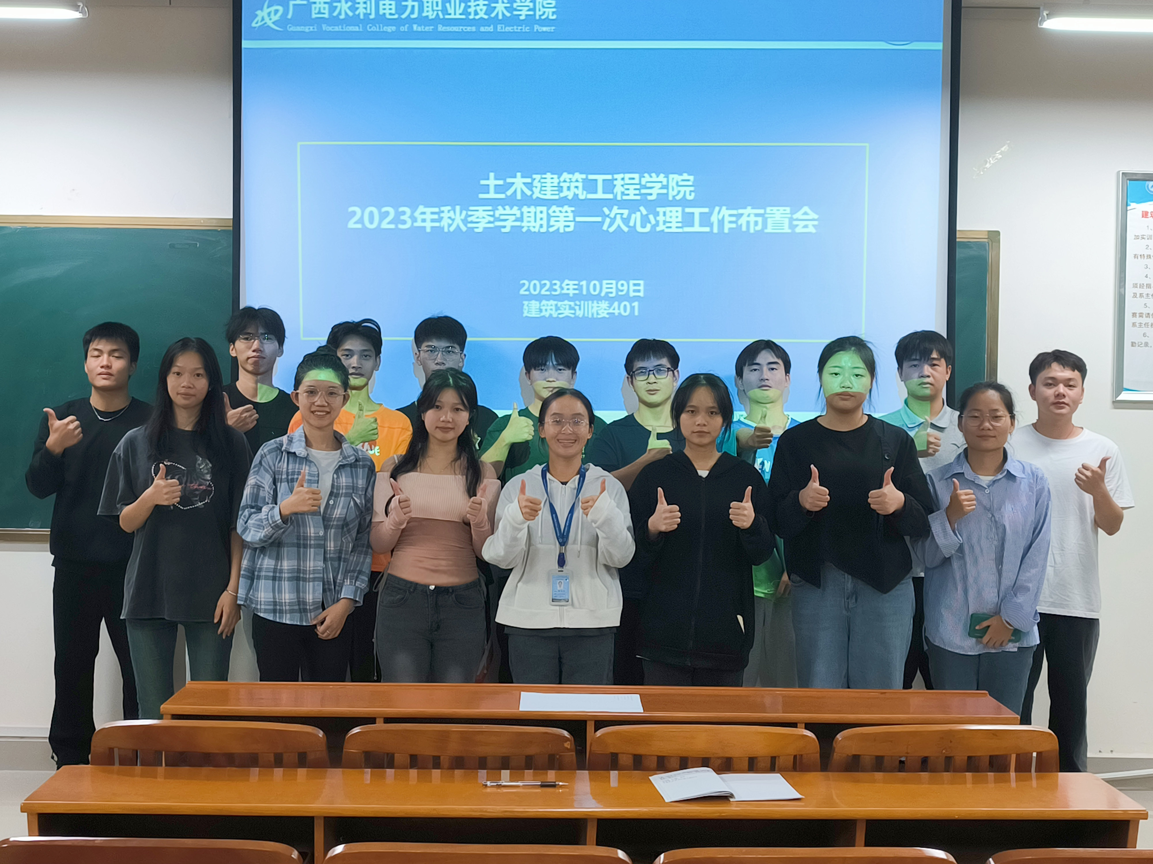 [本网讯]109日土木建筑工程学院在建筑实训楼401召开2023年秋季学期心理工作布置会议。心理部全体学生骨干参加会议,此次会议由学院心理辅导站站长覃荣坚老师主持