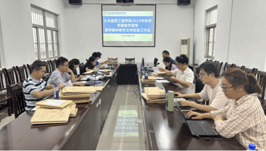 2023年10月27日下午,土木建筑工程学院2023年秋季学期教学督导暨学期中教学文件检查工作会议在长堽校区7楼会议室召开。本次期中教学检查按照校、二级学院两级开展,以各教学团队自查为主,校院领导现场检查为辅,围绕教学运行、实践教学、教学管理、教学改革四个方面展开。学校质量管理办公室主任龙艳红、学院党总支书记梁中超、学院教学团队负责人及骨干教师参加此次会议。