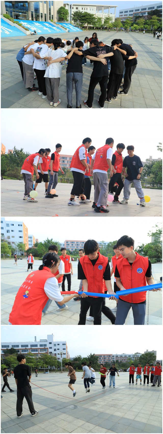 热身活动开始,活动主持人带领同学们围成一个圆圈,在热身活动中将队伍随机分成两个活动小组。接着,各小组分工明确、齐心协力,认真完成了“花开花落”“气球大战”“能量传输”“齐跳长绳”等游戏环节,现场欢声笑语不断彰显大学生青春朝气与健康活力