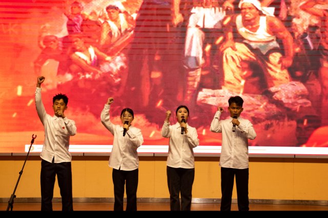 比赛最后梁中超书记做总结充分肯定了同学们在比赛场上的精彩表现,同时也希望同学们以红歌合唱中华经典诵读大赛为契机,以实际行动和青春力量唱响礼赞新时代、奋进新征程主旋律,在追梦的征程上,将坚定的红色刻进信仰,一路歌声嘹亮。