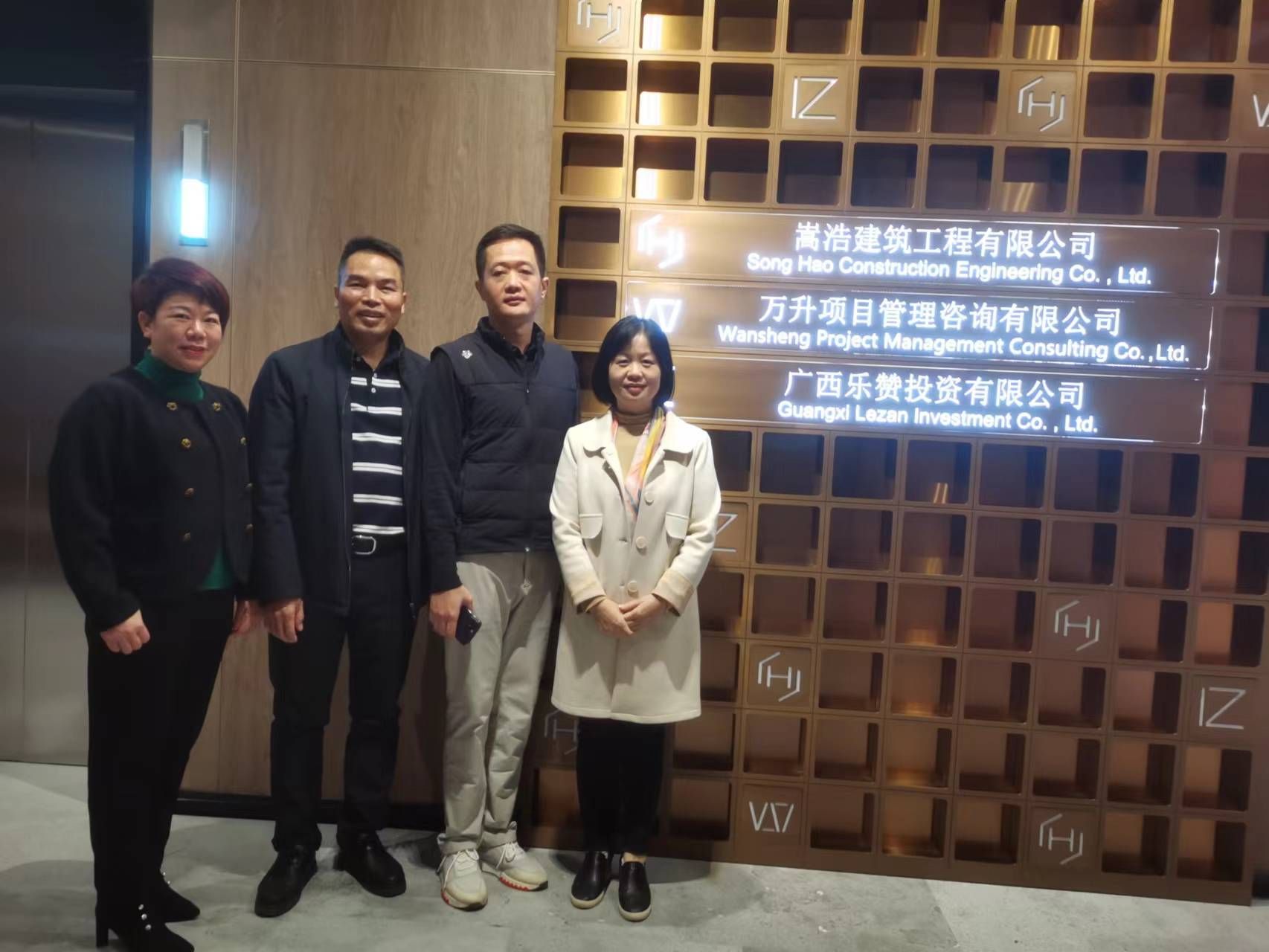 [本网讯]为了加强与企业联系,了解行业动态,开拓就业市场12月27日上午,土木建筑工程学院院长吴美琼一行深入嵩浩建筑工程有限公司、万升项目管理咨询有限公司、广西乐赞投资有限公司走访调研