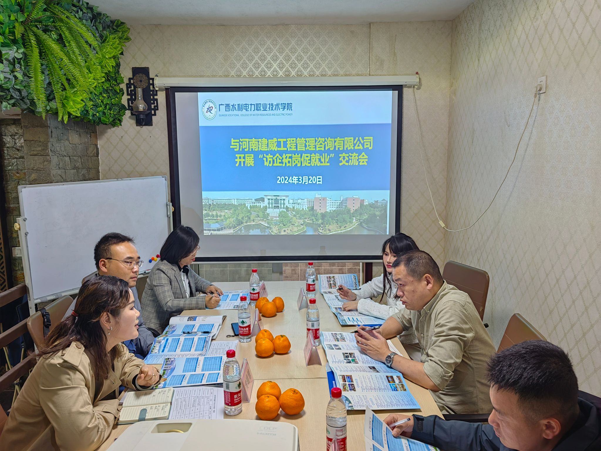 [本网讯]为持续深入推进“访企拓岗促就业”专项行动,促进精准对接用人单位需求,让毕业生更加充分高质量就业,3月20日下午,学校招生就业处副处长黄曦慧、土木建筑工程学院党总支书记梁中超、建工团队负责人赵春艳等一行前往河南建威工程管理咨询有限公司进行走访调研,公司刘威总经理、潘建副总经理热情接待调研组一行。