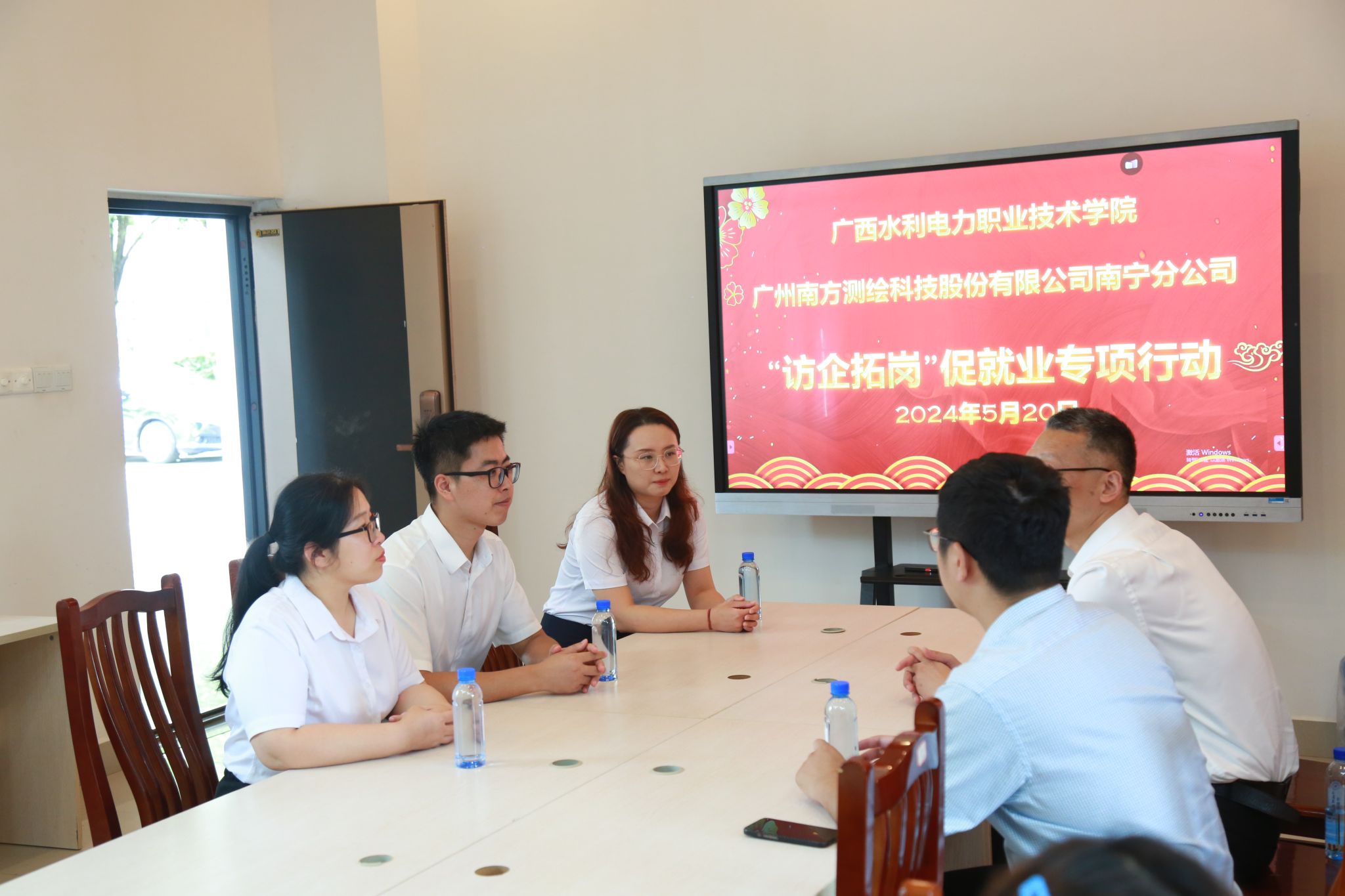 [本网讯]为深入了解企业需求、挖掘实习就业岗位,为毕业生争取更多就业机会,全力促进毕业生更加充分更高质量就业5月20日土木建筑工程学院副院长唐善德带队广州南方测绘科技股份有限公司南宁分公司开展“访企拓岗促就业专项活动公司副总经理苏玉峰出席座谈会。