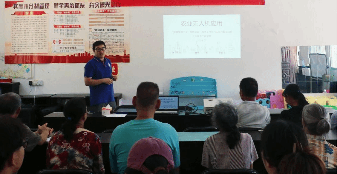 活动中,土木建筑工程学院教工党支部党员们开展“一支部一实事”服务活动,专业负责人陈俊宏带领测量服务队开展了“农业无人机应用”技术技能培训,为村民科普无人机在植保喷洒、播撒肥料、作物监测、智慧农业等方面的应用知识,培养新型职业农民,助力农村农业发展。