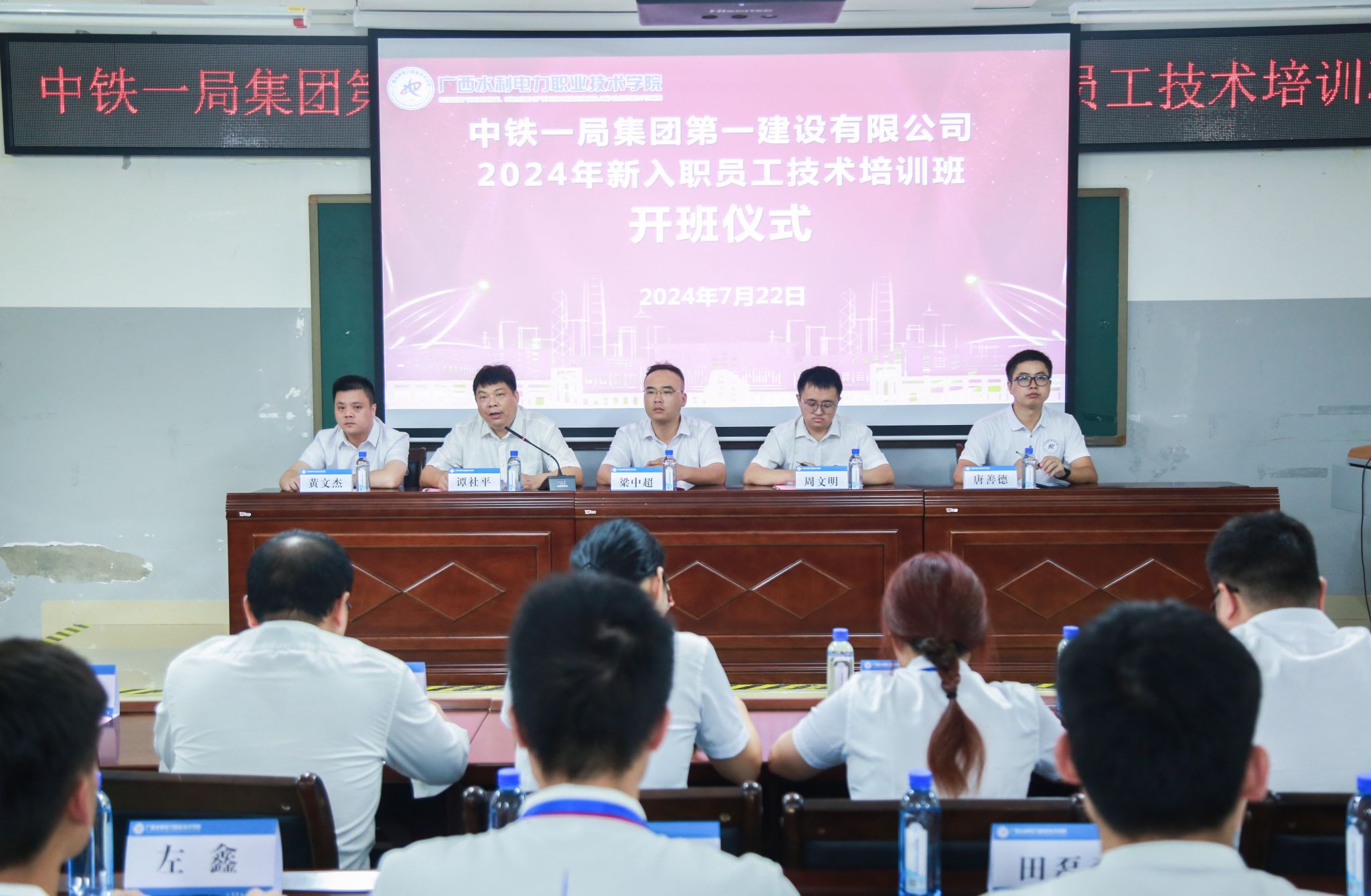 [本网讯]2024年7月22日上午,由继续教育学院和土木建筑工程学院承办的中铁一局集团第一建设有限公司2024年新入职员工技术培训班开班仪式在长堽校区第四教学楼2-5教室顺利举办。中铁一局集团第一建设有限公司人力资源(党委干部)部主管周文明、继续教育学院院长谭社平、土木建筑工程学院党总支书记梁中超、土木建筑工程学院副院长(主持工作)唐善德、土木建筑工程学院副院长黄文杰、部分授课教师代表和55名学员参训学员出席了开班仪式。仪式由唐善德主持。