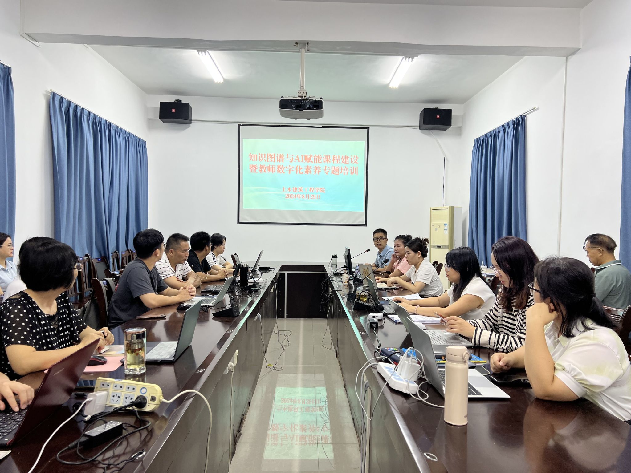 [本网讯]为促进现代信息技术在教育教学中的广泛应用,提升教师数字素养,提高课堂教学质量。8月29日下午,土木建筑工程学院邀请广西超星信息技术有限公司区域经理项雅枚、培训讲师邓玉仙在长堽电力实训楼7楼会议室开展知识图谱与AI赋能课程建设暨教师数字化素养专题培训。全院教职工50余人参加了培训,培训由土木建筑工程学院副院长(主持工作)唐善德主持。