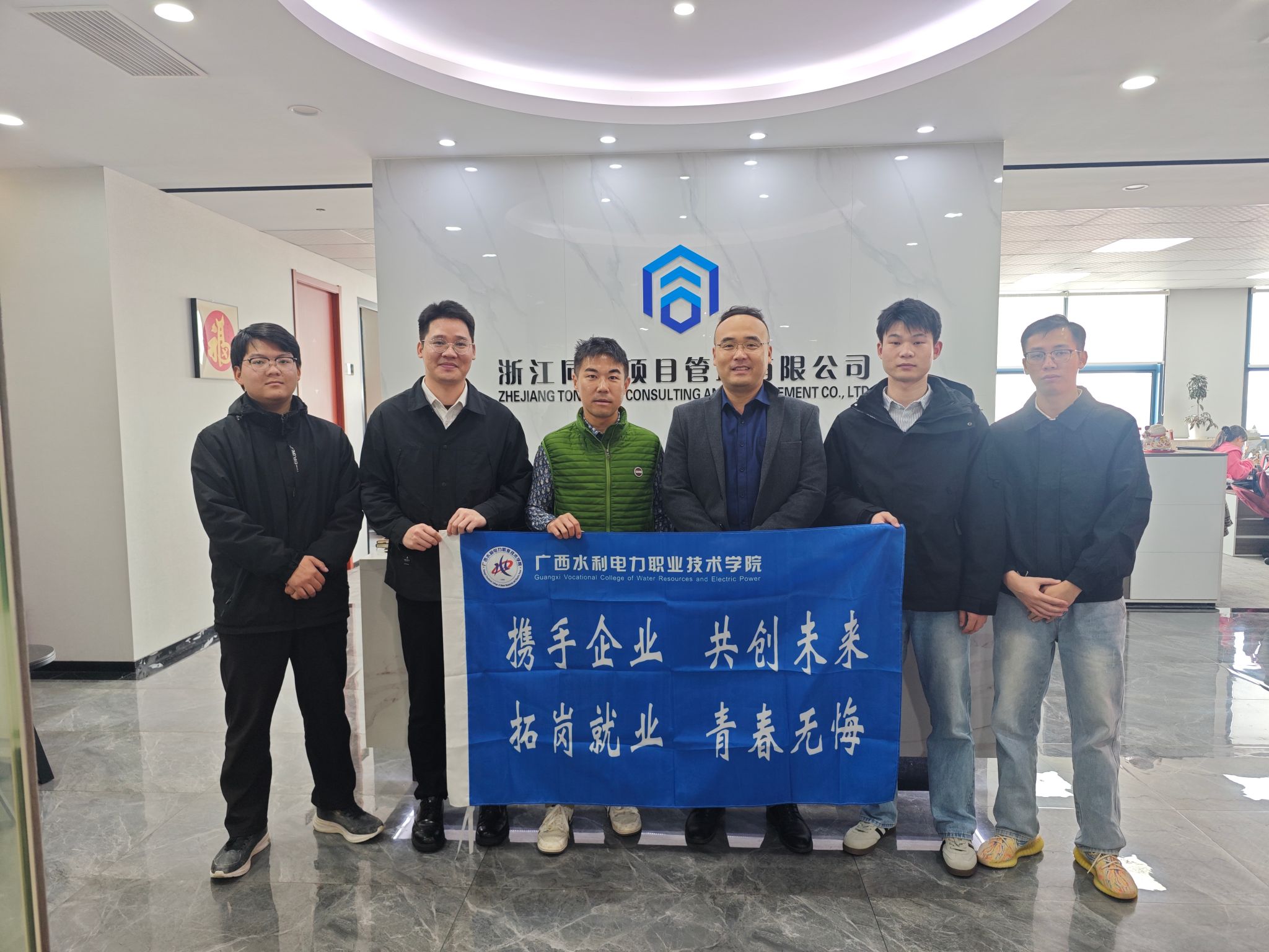 在浙江同洲项目管理有限公司,公司负责人薛彬热情接待调研团队并主持座谈交流。薛彬对学院实习生的工作表现给予肯定,称赞实习生工作态度端正、责任心强,同时结合监理行业岗位需求提出建议,希望学院进一步加强学生协调沟通能力的培养。他还透露,企业计划在两广地区拓展业务,期待与学院深化校企合作,建立长期稳定的人才供需对接机制。调研团队认真听取企业意见,就人才培养方向、实习基地建设等议题与企业方展开深入探讨。