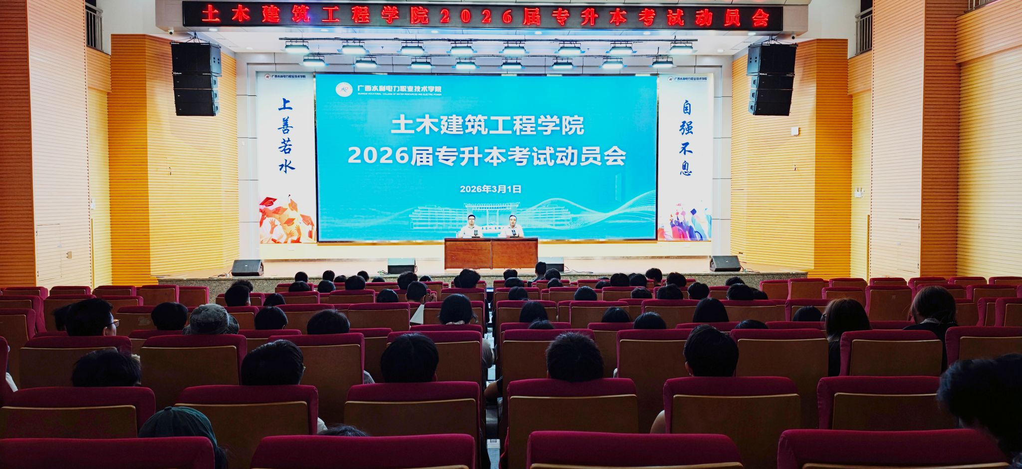 [本网讯]为进一步凝聚备考合力、明晰备考方向、筑牢备考信心,3月1日晚,土木建筑工程学院2026届专升本考试动员会在里建校区青年之家顺利举行。学院院长唐善德出席会议并作动员讲话,学院党总支书记梁中超主持会议,23级辅导员及全体返校备考学生参加会议。
