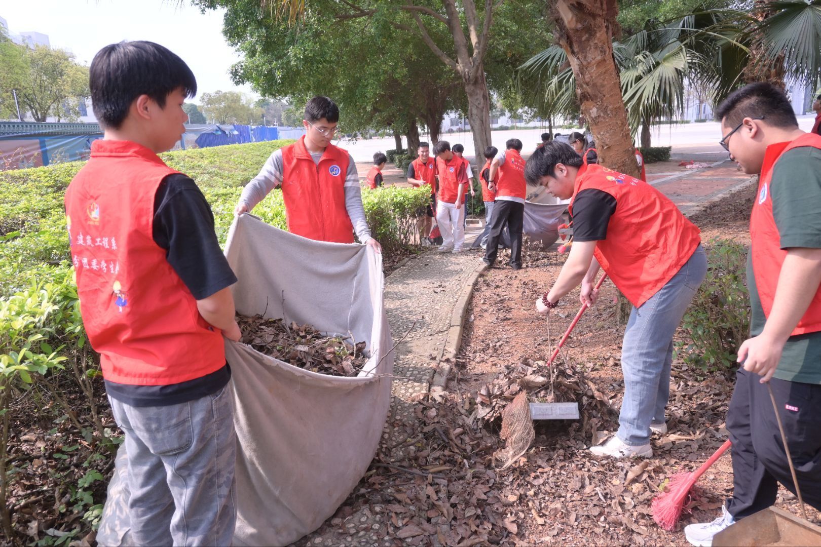 活动中,志愿者们热情饱满、分工协作,手持扫帚、垃圾夹、垃圾袋等工具,对校园主干道进行全面清理,认真捡拾纸屑、落叶、烟头及各类杂物,做到不留死角、环境整洁。大家不畏脏累、认真负责,现场形成了“人人参与、人人尽责”的良好氛围。