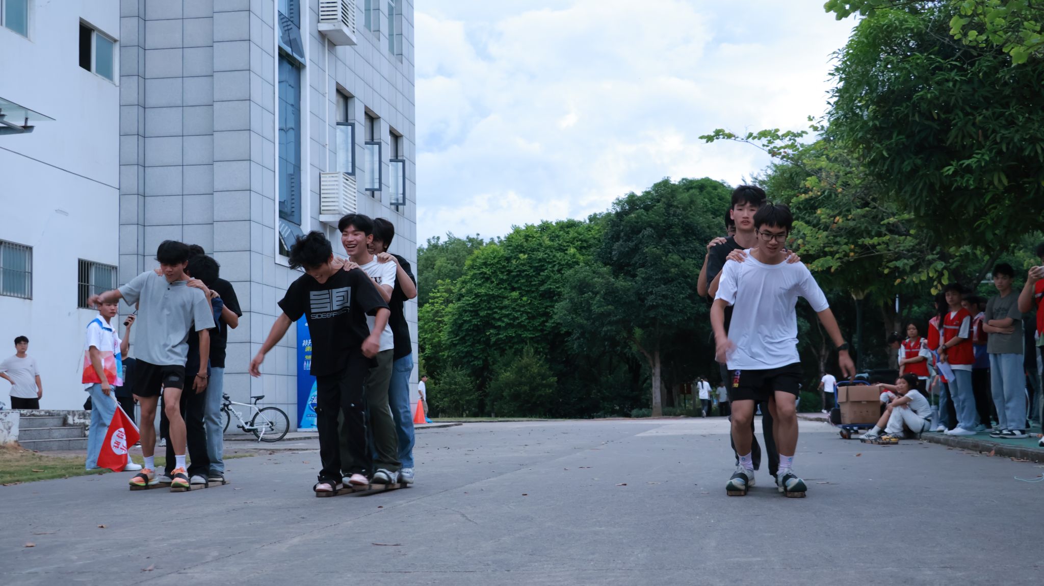本次运动会聚焦民族特色项目,设置了高杆绣球、背篓绣球、三人板鞋三大趣味竞赛环节,将民族文化与体育竞技巧妙融合。在高杆绣球项目中,参赛同学瞄准高处绣球筐,屏气凝神投掷,每一次精准命中都引来现场阵阵欢呼;背篓绣球环节里,“投球手”与“接球队员”默契配合,奔跑、传球间尽显协作乐趣;三人板鞋项目最具挑战性,参赛小队需步调一致、齐声喊号,在欢声笑语中向着终点冲刺,充分展现了团队协作的重要性。