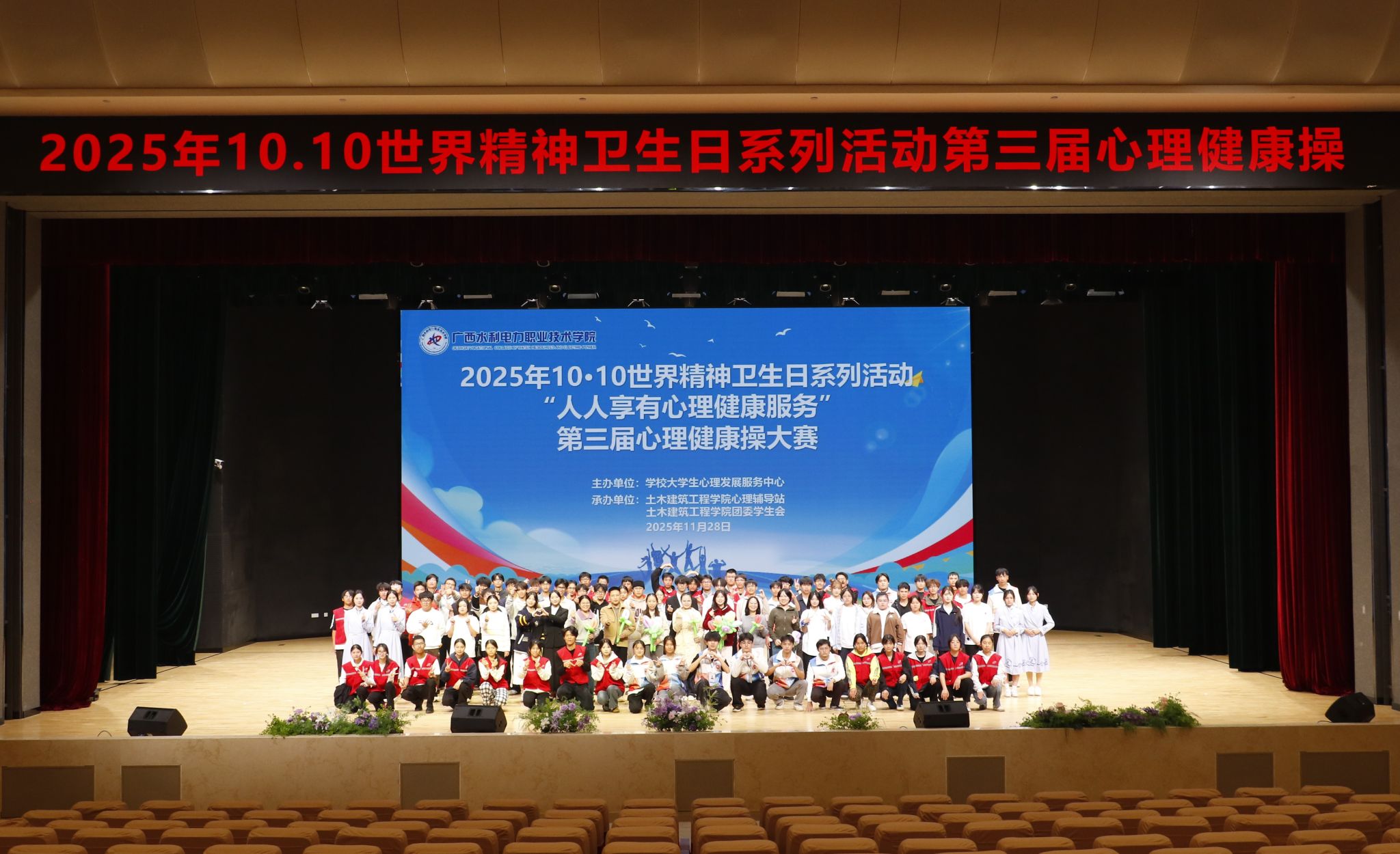 本届心理健康操大赛由学校大学生心理发展服务中心主办,土木建筑工程学院承办,旨在通过艺术形式引导学生树立“身心和谐”的健康理念,推动形成“人人关注心灵成长”的良好校园生态,有效引导广大学生关注心理健康,携手共筑健康成长之路。(覃荣坚/文 桂心茹、韦慧玲/图)