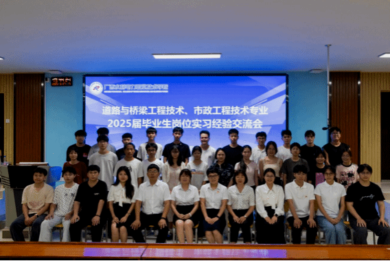 [本网讯]为深入贯彻落实推动现代化职业教育高质量发展的战略部署,充分发挥优秀实习生的示范引领作用,助力2026届学生顺利开启实习新征程,切实提升实习就业竞争力,6月28日下午,土木建筑工程学院路桥教学团队在里建教学楼报告厅举行道路桥梁工程技术、市政工程技术专业2025届毕业生岗位实习经验分享会。此次分享会邀请了2025届周俊阳、范柳春、陆海波、吴俊宇、张雪兰、钟军荣、吴俊宇等七位优秀实习生代表进行实习经验分享,路桥教学团队教师、辅导员以及170余名2026届学生代表参会。