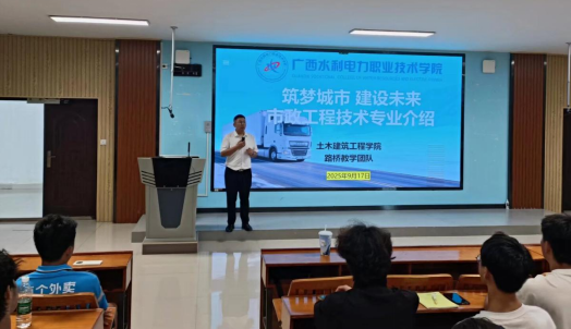 道路与桥梁工程技术专业负责人吕春雨与市政工程技术专业负责人刘政权,分别从专业发展历程、师资队伍、培养目标、课程体系、教学特色、实践教学平台、就业前景与发展方向等方面进行了系统介绍。通过生动的案例、翔实的数据和深入浅出的讲解,不仅解答了新生们“学什么”“怎么学”的疑惑,更描绘了“为何学”“未来做什么”的职业蓝图,极大增强了新生们的专业认同感和学习使命感。
