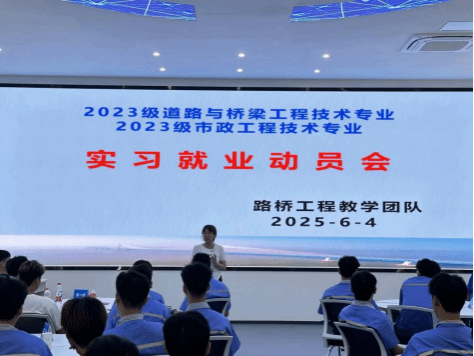 [本网讯]为全面推进土木建筑工程学院2023级学生的实习就业工作,引导生树立正确的就业观,认识参加企业应聘的重要性,提高就业积极性和主动性,6月5日上午,教学团队召开了2023级道路与桥梁工程技术专业、2023级市政工程技术专业学实习就业动员大会,团队教师吕春雨、刘政权、梁春燕(辅导员)及2025季学期参加实习的170余名生参加会议。
