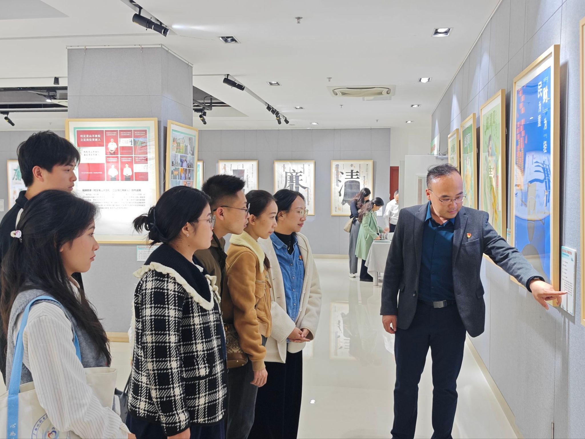 [本网讯]12月23日下午,为推进清廉学校建设走深走实,强化师生廉洁修身、廉洁从教的思想自觉,土木建筑工程学院党总支书记梁中超带队,组织师生代表赴广西艺术学院相思湖校区图书馆五楼,参观“廉洁润初心 铸魂担使命”广西高校廉洁教育主题作品展,以沉浸式廉洁文化熏陶筑牢师生思想防线。
