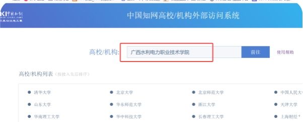 3. 在检索框输入广西水利电力职业技术学院,点击前往。