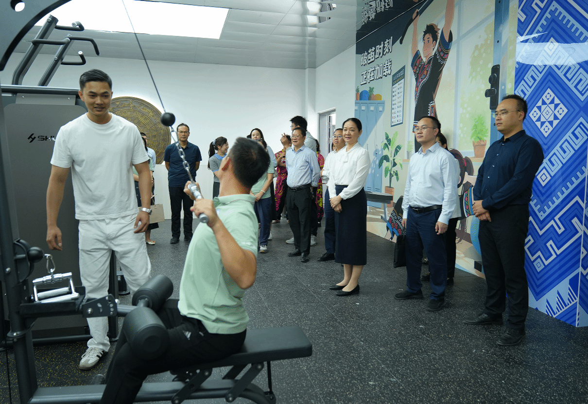 在热烈的掌声中,莫海燕宣布民族体育训练中心正式启用,并为中心揭幕。随后,与会人员参观了训练中心并亲身体验了各类健身设施。现场气氛热烈,师生们对中心的功能布局与专业设备给予了高度评价。