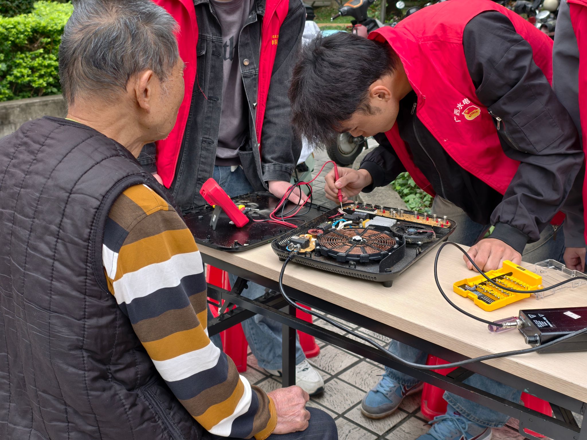 活动现场,临时搭建的维修服务台被居民们围得满满当当。电热水壶、电饭煲、电风扇、台灯、吹风机…… 一件件 “罢工” 的小家电被陆续送来,志愿者们耐心登记每一件电器的故障情况,化身 “电器医生” 细心 “问诊”。