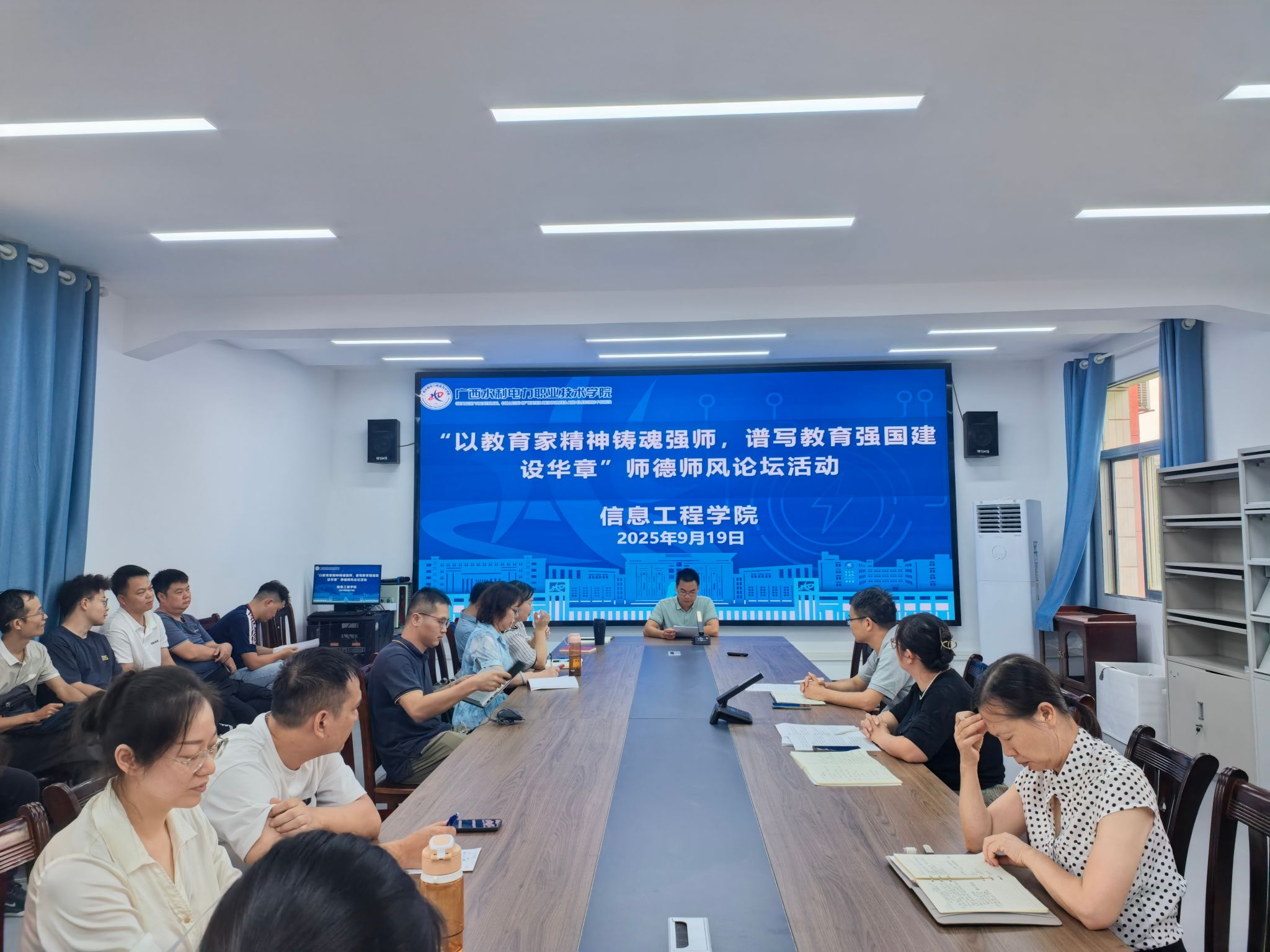 [本网讯]9月19日,信息工程学院全体教职工于信息楼3-6会议室开展“以教育家精神铸魂强师,谱写教育强国建设华章”师德师风论坛活动。