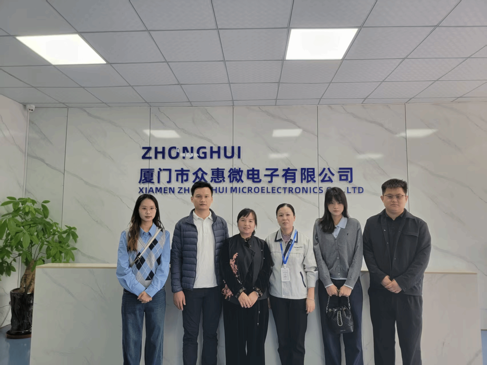 访企期间,先后走访了厦门弘信电子科技集团股份有限公司、厦门市众惠微电子科技有限公司等四家企业,深入生产车间、产线及质量检测车间,详细了解企业在消费电子等核心领域的技术优势、人才梯队建设规划等情况。在多场专题座谈会上,双方围绕行业发展趋势、岗位能力核心要求、薪资结构与福利保障体系等关键议题展开深入探讨。张志秀指出,企业“产才共兴”的发展模式极具借鉴价值,为院校精准开展人才培养、定向输送优质人才奠定了良好基础。