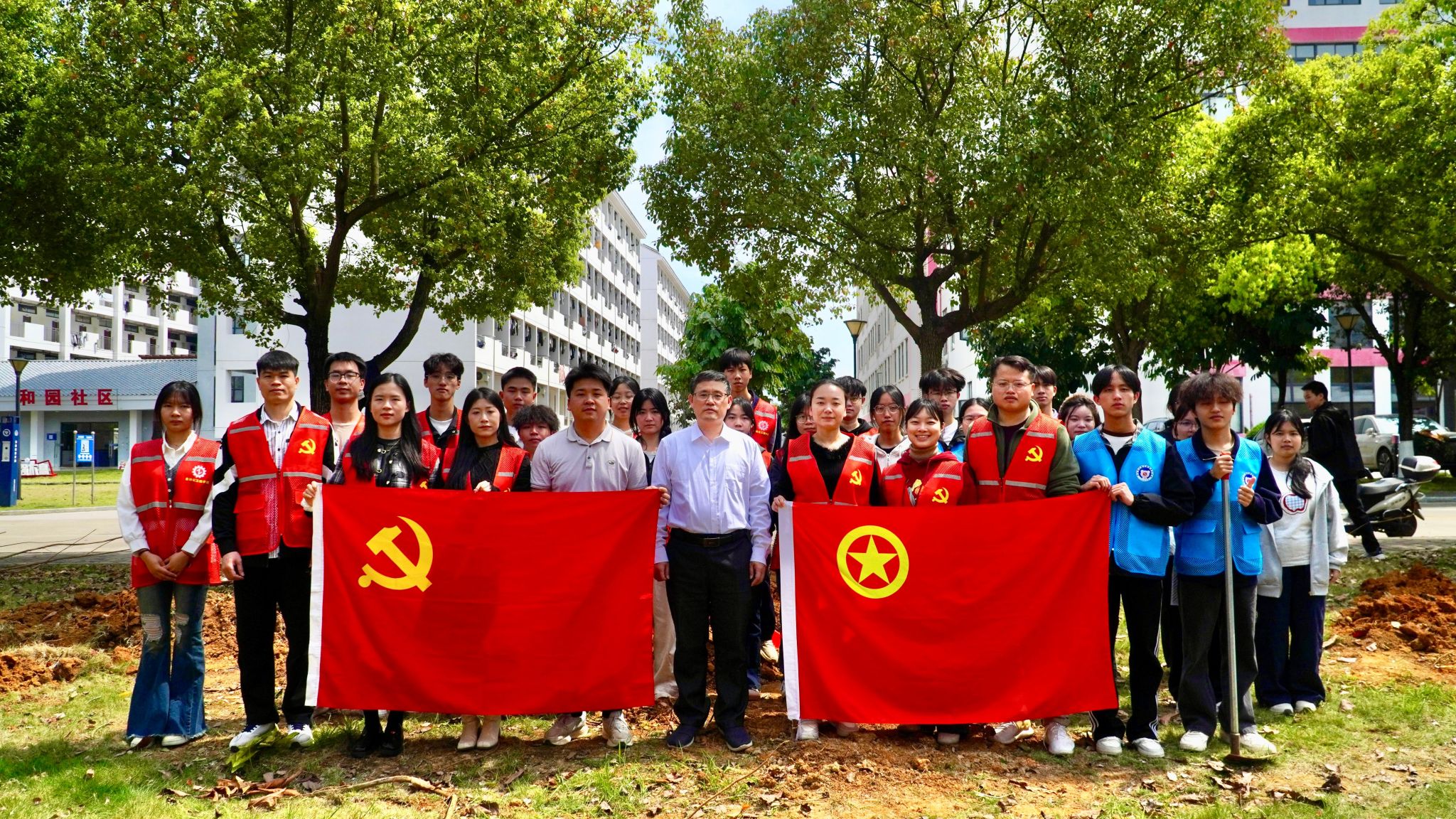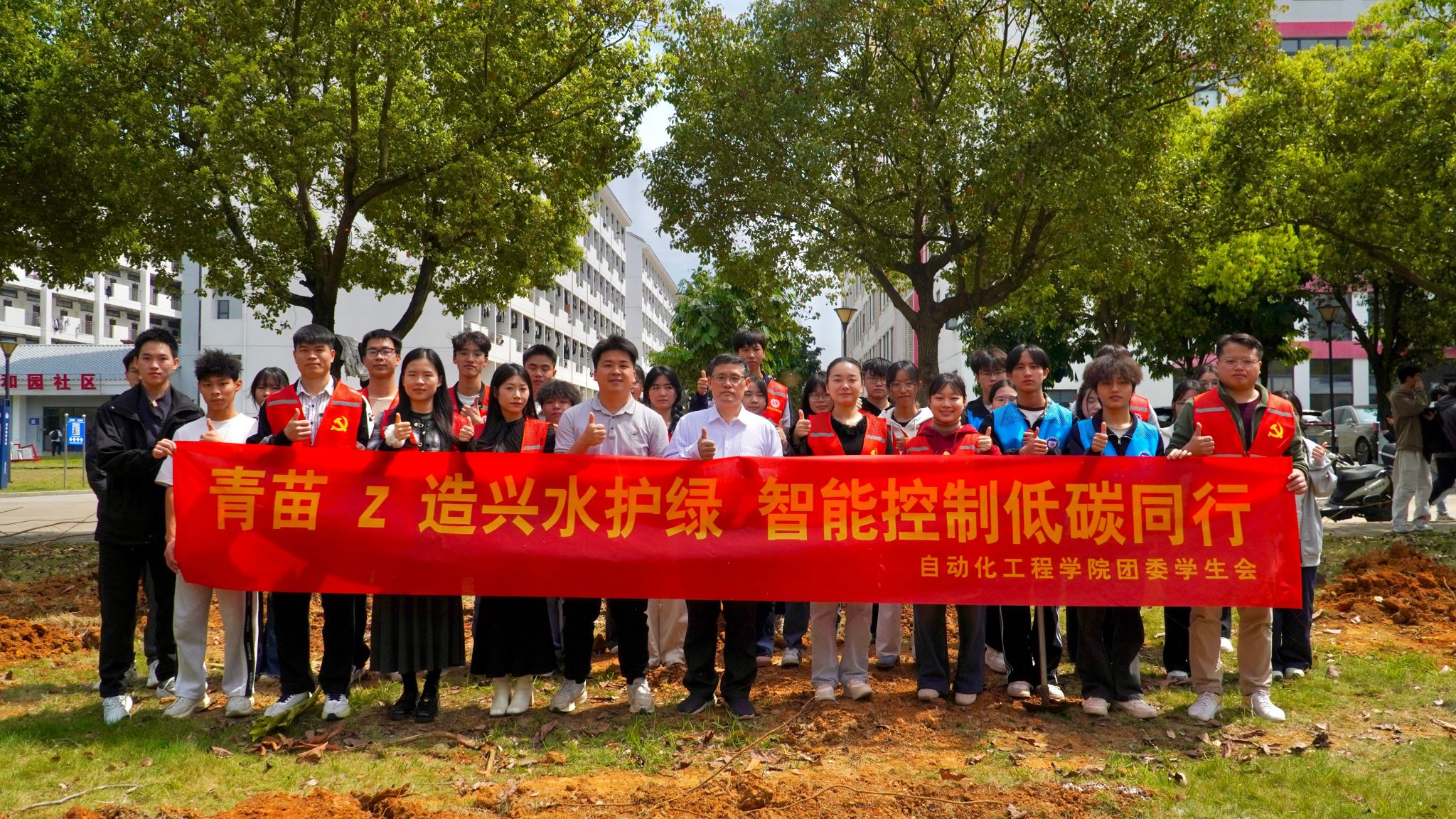 [本网讯]3月12日,第48个植树节如约而至,恰逢学校70周年校庆之际,自动化工程学院党建带团建,在里建校区开展“植此青绿,共赴新途”主题植树活动,以植绿护绿的躬身实践为校庆献礼,为校园添新绿。学院院长陈光会与教职工党员、学生代表参加了植树活动