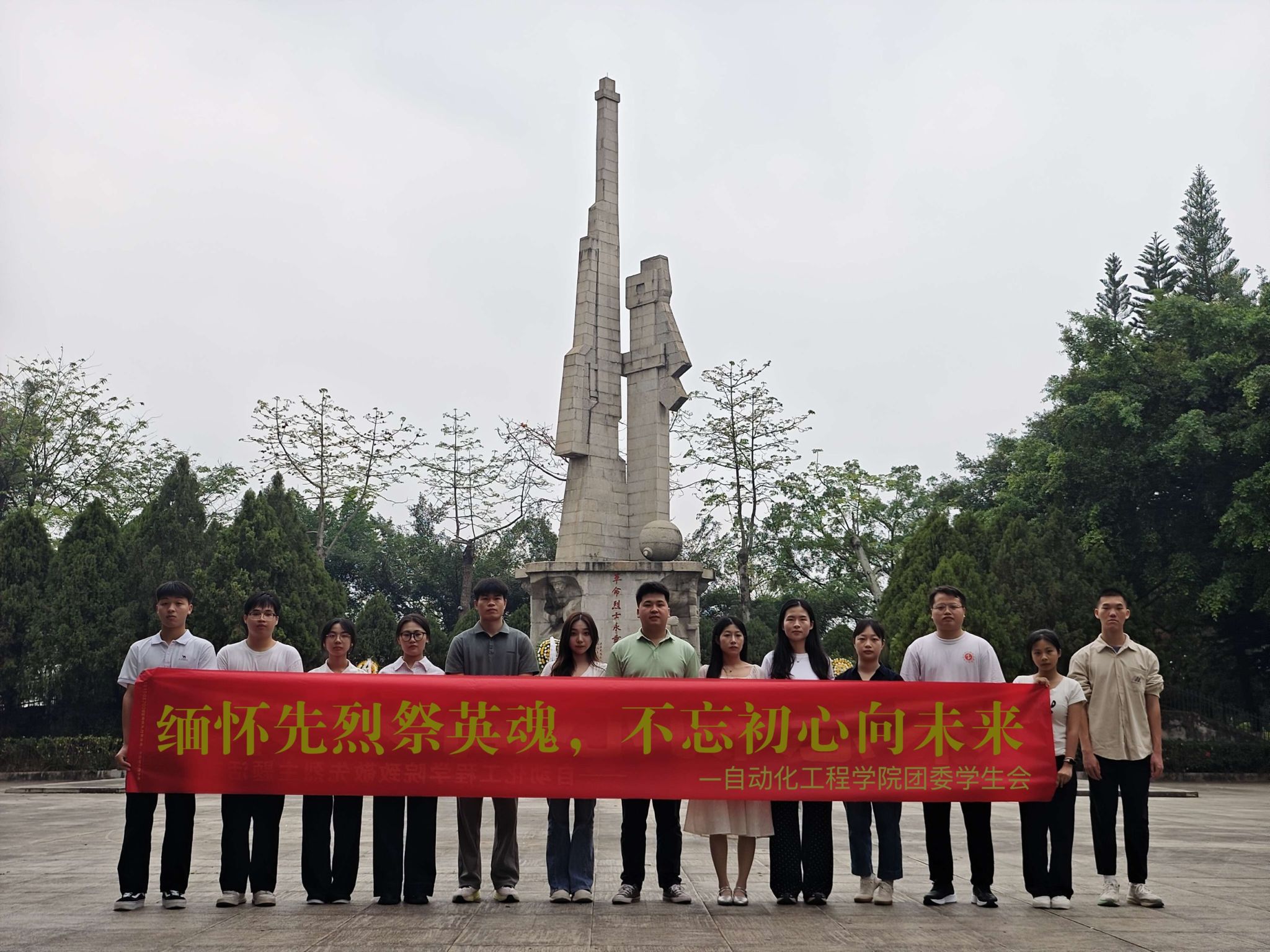[本网讯]2026年3月31日,自动化工程学院学生党支部党建带团建,组织师生党员与团学干部前往南宁市武鸣区狮子山公园烈士纪念碑,开展清明祭英烈主题教育活动,缅怀革命先烈,赓续红色血脉。